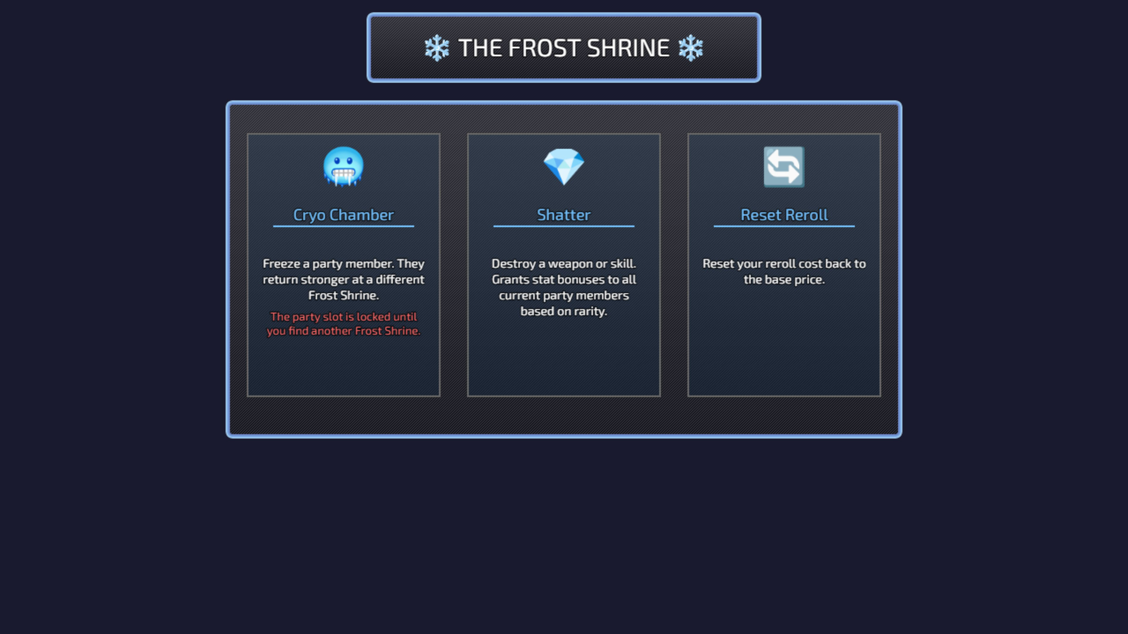 After each battle, you're presented with 3 randomized options. Pick one to add to your party. It could be a new character, a skill, a weapon, or a consumable item. Strategy comes from building synergies with what you're offered.
